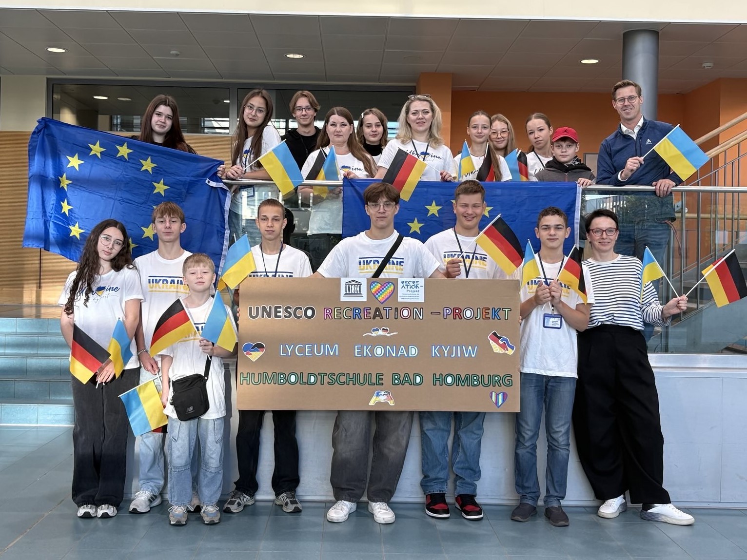 Vom 21. September bis 2. Oktober 2025 nahm die Humboldtschule Bad Homburg am UNESCO-Recreation-Projekt teil. Auf Initiative von Projektkoordinator Dr. Torben Waschke, unterstützt von Natalia Turkovska, tatkräftigen Lehrkräften und Schülern, bot die Schule zwölf Kindern und Jugendlichen aus Kyjiw eine unvergessliche Auszeit vom Kriegsalltag.