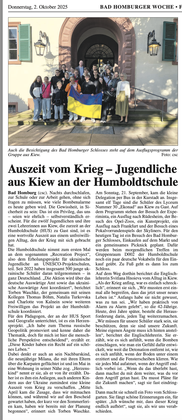 PresseKontakt für Presseanfragen:Anna Kriegsmannpresse@hus.hochtaunuskreis.netBeiträge aus den letzten Monaten125 Jahre - SchulballAktionstag gegen RassismusTag der offenen Tür 2026 Ukraine Recreation ProjektChemie-Wettbewerb